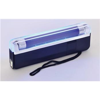 This high-quality 6 ", 4W handheld blacklight is ideal for forensics or illuminating fluorescent and blacklight reactive items. Also includes a built-in LED flashlight. Requires 4 AA batteries (not included).