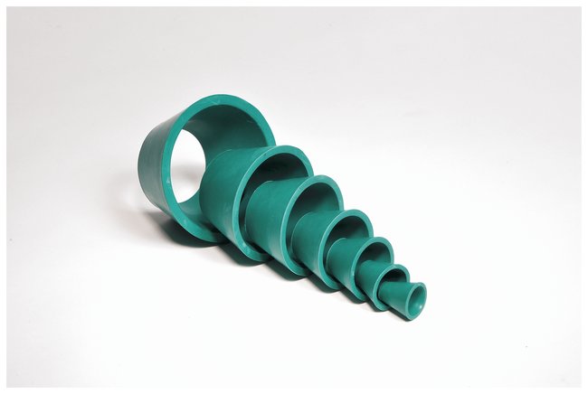 Set of 7 adapter cones designed to fit Buchner/fritted glass funnels, porcelain filters without headpieces, and for reverse flow cleaning of filter cruciblesUsed to support funnels, Gooch crucibles, filter tubes, and other apparatus in filtration assembliesUsed individually or nested with adjacent sizesFunctional even if not tightly fitted around funnel stem
