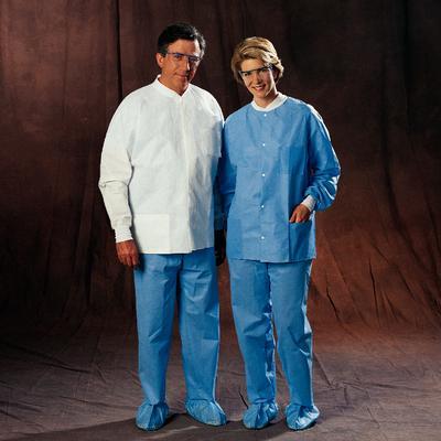 Lab Jacket^ Universal Precautions Lab Jacket, Designed for moderate fluid contact, Protective three-layer SMS is fabric resistant to blood strike-through, White, Knit collar and cuffs, small