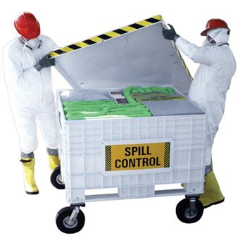 Absorbs up to 135 gallonsThis 170-gallon Universal Spill Cart is designed for indoor and outdoor applications where bulk tanks are present. Dispenser cart is made of heavy-duty, highly durable plastic. Kit remains water-tight when cover is on.Contents include 40 socks (3” x 4’), 200 pads (16” x 18”), 15 pillows (18” x 18”), 26 long socks (3” x 10’), 70 Spilfyter® wet wipes, 1 roll (16” x 150’), 2 pair of Nitrile gloves, 2 pair of splash goggles and 15 large disposal bags with twist ties.