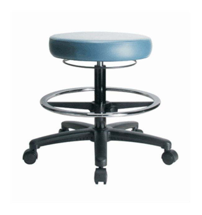 Vinyl Stool without Back - Medium Bench Height with Chrome Foot Ring and Casters in Grade B Vinyl, Each
