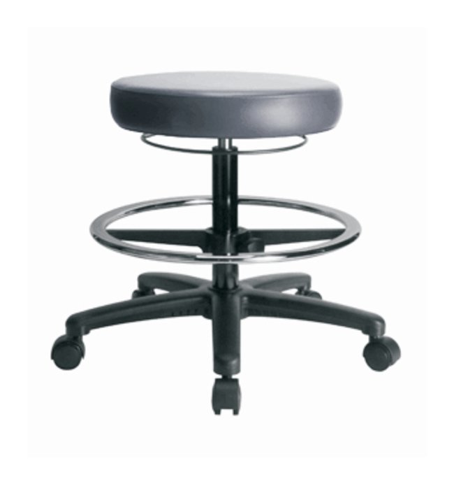 Vinyl Stool without Back - Medium Bench Height with Chrome Foot Ring and Casters in Grade B Vinyl, Each