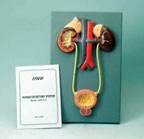 Natural size.Model shows: Kidneys, ureters, adrenal glands and bladder with prostateSectioned abdominal right kidneyOrder InfoMounted on base.