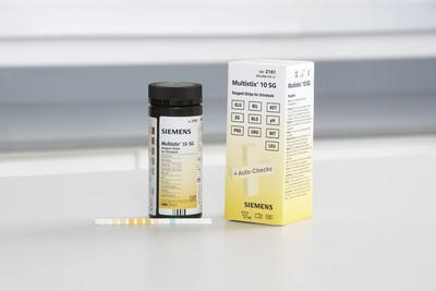 Reagent Strip^ Uristix* Reagent Strip are used for urinalysis testing. Firm plastic strips, disposable. Each strip tests for two important markers, glucose and protein. CLIA waived, Store in bottle, ready to use