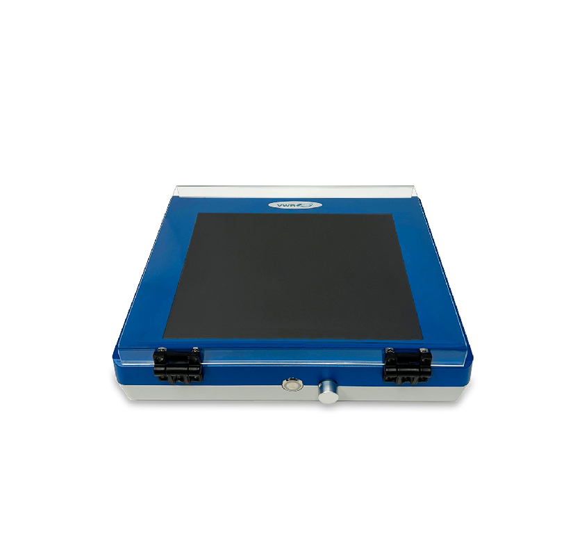 Wavelength: 302 nm, The VWR® UV transilluminator offers high-performance gel viewing in a modern, compact housing., The VWR® UV transilluminator features a large, scratch-resistant viewing surface that is evenly illuminated by four high-powered 14 W UV tubes. UV intensity is fully adjustable using the control knob. The long-lasting filter glass ensures a 302 nm mid-range output ideal for gels stained with ethidium bromide, SYBR green, and red stains. Models are available with either 115 or 230 V input., 02_BulletPoint: Hinged, UV-blocking safety cover | Scratch-resistant viewing surface | Adjustable UV intensity, VWR® UV transilluminator, Dimensions: 21×26 cm, Cat. No.: 77627-820, Electrical: 115 V, Wavelength: 302 nm, The VWR® UV transilluminator offers high-performance gel viewing in a modern, compact housing., The VWR® UV transilluminator features a large, scratch-resistant viewing surface that is evenly illuminated by four high-powered 14 W UV tubes. UV intensity is fully adjustable using the control knob. The long-lasting filter glass ensures a 302 nm mid-range output ideal for gels stained with ethidium bromide, SYBR green, and red stains. Models are available with either 115 or 230 V input., 02_BulletPoint: Hinged, UV-blocking safety cover | Scratch-resistant viewing surface | Adjustable UV intensity, Irregular Voltage: Y, VWR® UV transilluminator, Dimensions: 21×26 cm, Cat. No.: 77627-822, Electrical: 230 V, The VWR® UV transilluminator offers high-performance gel viewing in a modern, compact housing., The VWR® UV transilluminator features a large, scratch-resistant viewing surface that is evenly illuminated by four high-powered 14 W UV tubes. UV intensity is fully adjustable using the control knob. The long-lasting filter glass ensures a 302 nm mid-range output ideal for gels stained with ethidium bromide, SYBR green, and red stains. Models are available with either 115 or 230 V input., 02_BulletPoint: Hinged, UV-blocking safety cover | Scratch-resistant viewing surface | Adjustable UV intensity