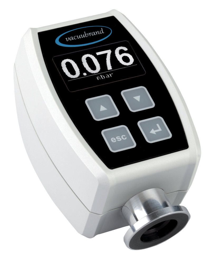 Vacuum gauge^ Vacuubrand Vacuu* view extended corrosion resistant fine vacuum gauge, Dual transducer - capactive and Pirani, Measuring range from atm. to 0.001 mbar/hPA/Torr in choice of units. 100-240V / 50-60Hz universal power supply with US/CEE/CH/UK/AUS/CN