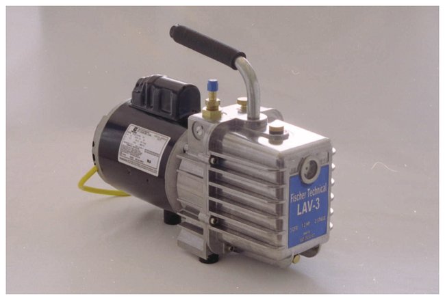 Two-stage pump features a clean, functional design with vibrationless operation. Ultimate vacuum is 1 micron in the lab and better than 25 microns under field conditions.Free air displacement: 85L/min.Pump speed: 1,725rpmMotor: 1/3hp, 110V 60HzHose connection: 0.25 in. (0.63cm) I.D. tubingDimensions: 15.5L × 6.5W × 11.25 in.H (38.8 × 16.3 × 28.1cm)Weight: 28 lb. (12.7kg)Good vacuum practice calls for the hose connections to be as short as possible to achieve ultimate vacuum. A gas ballast helps purge moisture from the vacuum system. The gas ballast valve, oil-level gauge, inlet and outlet connections, oil fill plug and drain are all easily accessible. A trap reduces the risk of oil being drawn back into the system.