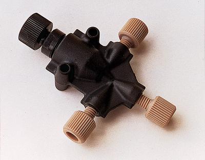 Valve, Graduated Micro-Splitter^ High Pressure, 10-32 Threads/6-32 Threads, 316 Stainless Steel Needle, includes 2 One-Piece Fingertight Fittings for 1/16 OD Tubing and one Micro Finfertight Fitting for .025 Tubing Sleeves/Capillary Tubing