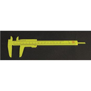 All plastic construction. Dual scale range is 6 " or 150mm. Readability is 1/128 " or 0.05mm.