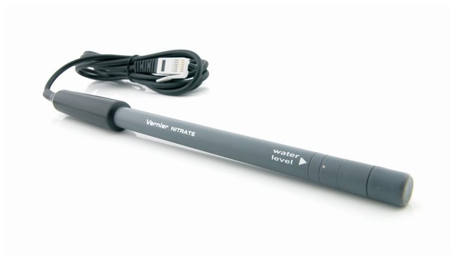 Determine concentration of nitrate ions in water samplesCombination-style, non-refillable, gel-filled electrodeReplaceable PVC membrane with limited life expectancyCompatible Interfaces: LabQuest™ 2, Original LabQuest, LabQuest Mini, Go!Link™, SensorDAQ™, LabPro™, EasyLink™, CBL2™, TI-Nspire Lab Cradle™Specifications:Range: 1 to 10,000mg/L or ppmAccuracy: ±10% of full scale (calibrated 1 to 100mg/L)pH Range: 2.5 to 11Interfering Ions: CIO4, I-, ClO3, CN-, BF4Electrode Slope (log voltage vs. concentration): -56mV/decadeElectrode resistance: 1 to 4MOhmTemperature Range: 0° to 50°CMinimum Immersion: 1.1 in.Electrode Length: 155mmBody Diameter: 12mmCap Diameter: 16mmCable Length: 100cmNotesNot recommended for middle school or elementary students.Order InfoInterface and software sold separately.Warranty and ServicesFive years on electrode and one year on module.