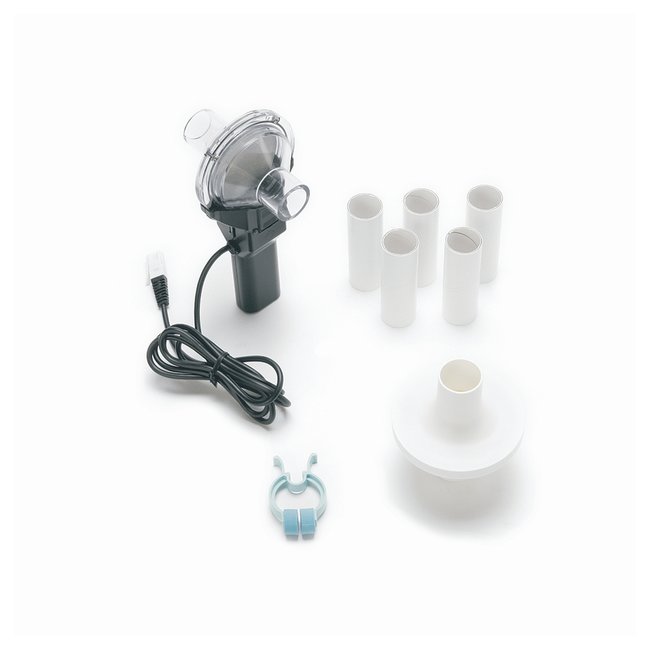 Used to perform a variety of experiments related to air flow and lung volumeClear acrylic plastic constructionHandle is made from black ABS plasticRemovable flow head (I.D. 22mm, O.D.: 30mm) for easy cleaning and sterilizationDifferential pressure transducerRecommended for all gradesCompatible Interfaces: LabQuest™ 2, Original LabQuest, LabQuest Mini, GoLink™, SensorDAQ™, NXT Sensor Adapter™, LabPro™, EasyLink™, TI-Nspire Lab Cradle™Specifications:Flow rate: ±10L/sec.Dead Space: 93mLNominal Output: 128mV/(L/s)Detachable Flow Head (Dia. x L): 80.5 x 101.5mmMass: 80gHandle Dimensions: 127 x 23 x 35mmHandle Mass: 85gCable Length: 1.5mDefault Sampling Rate: Computer: 100 samples/sec.; TI Calculator: 50 samples/sec.Order InfoInterface and software sold separately.Warranty and ServicesFive years (limited).