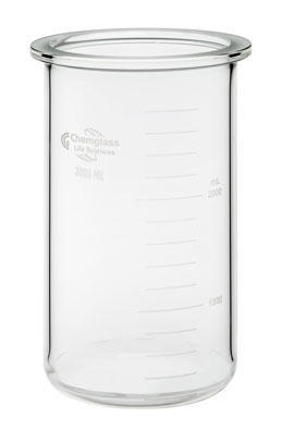 Unjacketed Bio Reactor Vessel 2L^ Unjacketed Bio Reactor Vessel, Capacity: 2L, Material: Glass, Minimum working volume: 0.5L, ID: 105mm, Overall Height: 246mm, constructed of heavy wall tubing and are graduated in 200mL subdivisions with numbers every 1000mL
