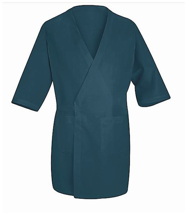 The Collarless Butcher Wrap has long sleeves and reversible self-tie closure provide plenty of coverage. Store tools and notes in the interior left chest pocket or in exterior lower pockets so you have convenient access to them on the job.