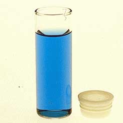TITESEAL* Shell Vial with Plug-Style Cap^ Amber 203 borosilicate glass. With plug-style polyethylene needle closures. Vials and caps packed separately. Vials are shrink-wrapped trays of 200; caps are bulk-packed in plastic bags. Capacity: 4ml. ODxLength: 15x44mm.
