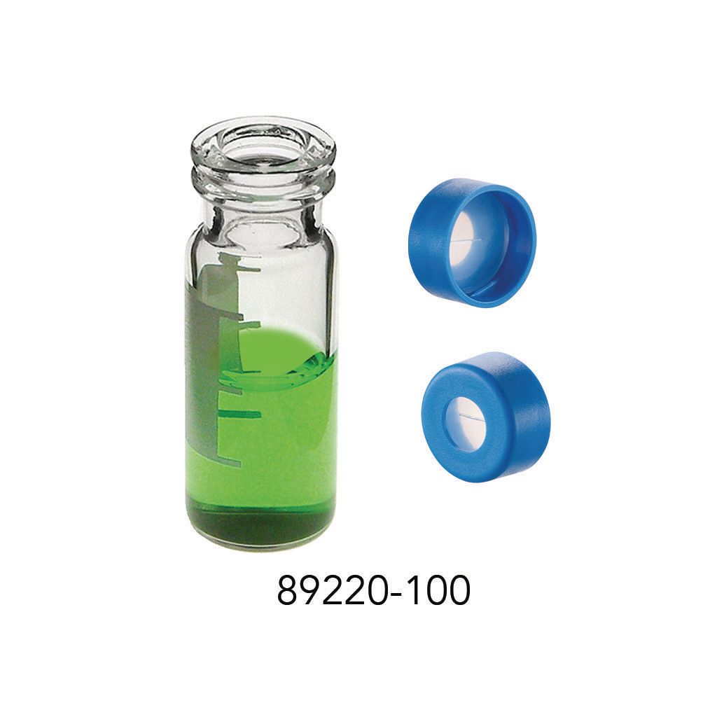 Easy Purchase Pack. RSAutosampler vials^ Snap top 2ml clear glass with write on patch 12x32mm and snap caps w/ pre-slit AQR silicone/PTFE septa. AQ brand. 100/pack. VWR Cat. No. 89220-100