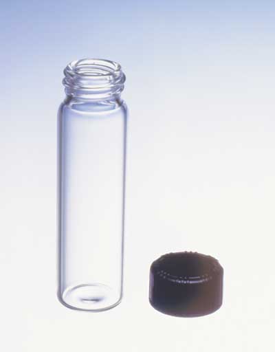 Clear screw thread sample vial, Closed-top black phenolic closure with polyvinyl-faced pulp liner (not attached)