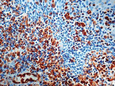 Vimentin^ Clone number V9, This antibody reacts with the 57 kD intermediate filament protein present in the cells of mesenchymal origin. The antibody does not show any cross-reactivity with other intermediate filament proteins. However, it shows a broad interspecies cross-reactivity.