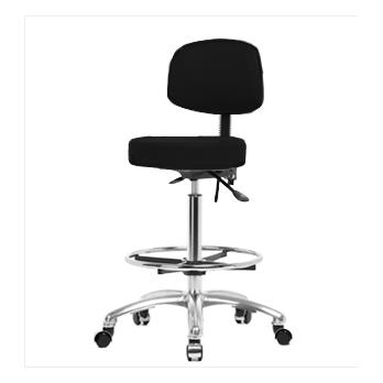 Our ergonomic vinyl stools adjust to fit most body types and workstations. The upholstered cushion includes highly durable molded polyurethane foam. Additional ergonomic benefits include an adjustable back rest with lumbar support for increased comfort during extended sitting durations. Optional seat tilt provides 8° forward and 3° backward locking tilt for ergonomic posture support. These high bench height stools offer several customizable options, including your choice of chrome-hooded casters or glides on a polished cast aluminum base, and over 65 antimicrobial/antibacterial standard and custom vinyl color configurations. Twenty-inch diameter chrome foot rings are available. Each ergonomic stool is backed by our 15-year warranty, lifetime on the pneumatic cylinder.Chairs shipping to California or Massachusetts may be subject to state mandated fire treatment and may be subject to an up-charge.Visit our seating website www.thomaschair.com to view all available options, specs and for easy ordering!