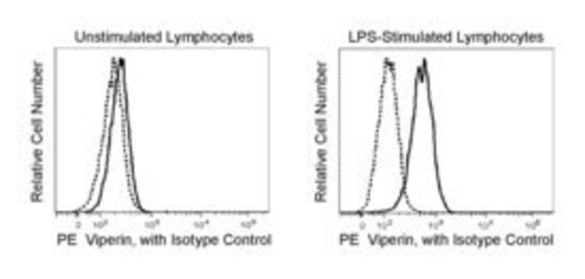 The MaP.VIP monoclonal antibody specifically binds to Virus inhibitory protein, endoplasmic reticulum-associated, interferon-inducible (Viperin), which is also known as Radical S-adenosyl methionine domain-containing protein 2 (Rsad2). Viperin is a 43 kDa protein that is localized to the endoplasmic reticulum and lipid droplets. It functions in protective responses to a number of different DNA and RNA viruses. Viperin expression is induced in cells by different agents such as, Type I interferons, Interferon- γ(IFN- γ), DNA and RNA viral proteins, Polyinosinic:polycytidylic acid, and lipopolysaccharide. Various cell types can be induced to express Viperin including T and B lymphocytes, macrophages, granulocytes, dendritic cells, fibroblasts, endothelial cells, and epithelial cells.