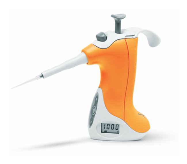The adjustable hook can be easily positioned for a custom fit for left- or right-handed usersFits comfortably in the palm of your handVolume setting is indicated by an LCD readout on the pipetter handleSignificantly improves postures and reduces forces associated with pipettingFive popular volume settings can be programmed and recalled by pressing a single buttonEnergy release button stores the energy captured during the acquisition of tips and uses energy to push off the tip at the gentle push of a buttonLow-force, form-fitting plunger allows user to manually control the speed of aspirating and dispensing with minimal effortNozzle with replaceable filter prevents contamination of the pipetterStands securely on the counter before, during, and after the job—no risk of contaminationIn-lab calibration adjusted with internal software