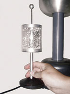 Great for demonstrating Coulomb's law qualitatively and illustrating the method of smoke control based on the electrostatic removal of solid particles from the smoke stream.Consists of a transparent cage with a metallic ceiling and floorTiny conductive balls inside begin to bounce when near an active Van de Graaff generatorResults in what looks like a hailstorm