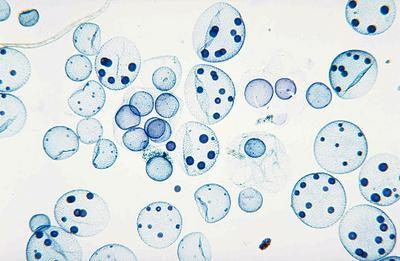 VOLVOX-ASEXUAL REPRODUCTION (WM) SLIDE. ,Each