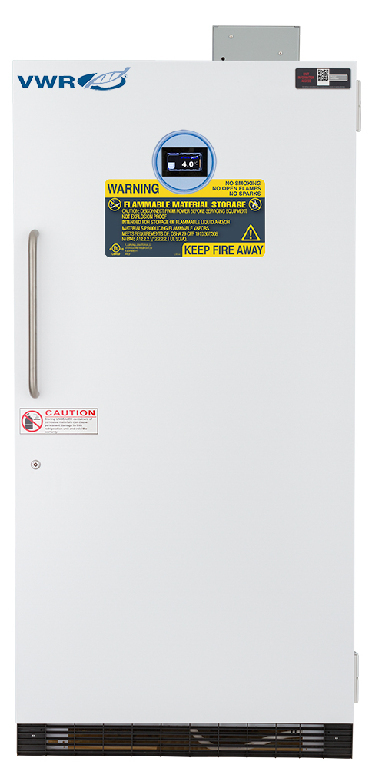 Temperature range: 1...10 °C, These VWR® laboratory refrigerators are designed for the safe storage of flammable substances., These flammable storage refrigerators are designed to store and protect volatile substances in laboratory settings. These units meet the requirements of NFPA 45 and NFPA 30 for cold storage of flammable and combustible materials in unclassified laboratory locations. They utilize non-sparking and/or ATEX rated components to ensure an intrinsically safe interior for flammable materials in sealed containers., 04_BodyText: The Performance line showcases the most elite features including state-of-the-art touchscreen controllers, advanced alarms and data logging capabilities and unparalleled temperature control., 05_BodyText: Material: White powder coat., 02_BulletPoint: Touch screen digital temperature display | Extensive alarm systems | Temperature data logging and USB port for data transfer | Microprocessor temperature controller | Keyed door lock, 08_Certifications: Units meet the requirements of NFPA 45 and NFPA 30 for cold storage of flammable and combustible materials in unclassified laboratory locations. UL/C-UL listed., 10_Ordering: Units come with a three year parts and labor warranty., Capacity: 850 L (30 cu.ft.), Performance series laboratory refrigerator upright flammable storage, 30 CF, Cat. No.: 76580-144, Electrical: 115 V, 60 Hz, 6 A, ⅓ HP, Defrost: Cycle, Door Type: 1 solid door, right hinged, Shelves/drawers: 5 adjustable shelves, Weight: 191 kg (421 lbs.), Exterior W×D×H: 908×889×1949 mm (35¾×35×76¾"), Interior W×D×H: 813×572×1651 mm (32×22½×65"), Cat. No.: 76580-144, Final SAP Desc Link: 6058295, SAP Description Status: Ready, These VWR® laboratory refrigerators are designed for the safe storage of flammable substances., These flammable storage refrigerators are designed to store and protect volatile substances in laboratory settings. These units meet the requirements of NFPA 45 and NFPA 30 for cold storage of flammable and combustible materials in unclassified laboratory locations. They utilize non-sparking and/or ATEX rated components to ensure an intrinsically safe interior for flammable materials in sealed containers., 04_BodyText: The Performance line showcases the most elite features including state-of-the-art touchscreen controllers, advanced alarms and data logging capabilities and unparalleled temperature control., 05_BodyText: Material: White powder coat., 02_BulletPoint: Touch screen digital temperature display | Extensive alarm systems | Temperature data logging and USB port for data transfer | Microprocessor temperature controller | Keyed door lock, 08_Certifications: Units meet the requirements of NFPA 45 and NFPA 30 for cold storage of flammable and combustible materials in unclassified laboratory locations. UL/C-UL listed., 10_Ordering: Units come with a three year parts and labor warranty., Final SAP Desc Link: 6058295, SAP Description Status: Ready