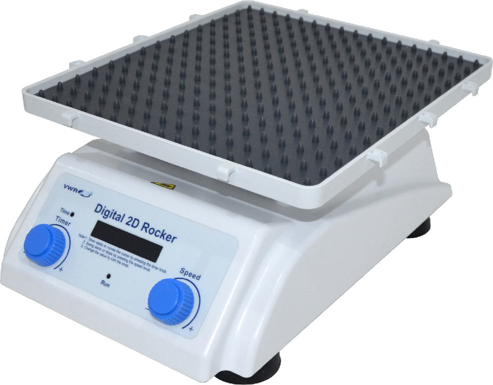 VWR® 2D platform rockers are ideal for use in blotting and staining applications as well as gentle mixing of solutions and reagents., 02_BulletPoint: Space saving design and robust construction provide durability, reliability and quiet operation | Large platforms with hooks for rubber strips easily accommodates many tubes, flasks and bottles | Models feature adjustable speed and timer | 2D large capacity rocker features adjustable tilt angle | All models suitable for use in coldrooms and standard incubator environments | 2 year replacement warranty, 08_Certifications: CE Certified, 11_Delivery: Units supplied with dimpled rubber mat (76595-818), and rubber strips 6/pack (76595-816), instruction manual and power cord., Final SAP Desc Link: 7012109, SAP Description Status: Ready, VWR® 2D platform rockers are ideal for use in blotting and staining applications as well as gentle mixing of solutions and reagents., 02_BulletPoint: Space saving design and robust construction provide durability, reliability and quiet operation | Large platforms with hooks for rubber strips easily accommodates many tubes, flasks and bottles | Models feature adjustable speed and timer | 2D large capacity rocker features adjustable tilt angle | All models suitable for use in coldrooms and standard incubator environments | 2 year replacement warranty, 08_Certifications: CE Certified, 11_Delivery: Units supplied with dimpled rubber mat (76595-818), and rubber strips 6/pack (76595-816), instruction manual and power cord., VWR® digital 2D rocker, with LCD display, Cat. No.: 76595-804, Electrical: 110 VAC, 60 Hz, 10 W, Tilt angle: ±10⁰, Max. load: 2 kg (4.4 lbs.), Speed: 2 - 80 rpm, Timer: 0 - 99 h 59 min, Final SAP Desc Link: 7012109, SAP Description Status: Ready, VWR® 2D platform rockers are ideal for use in blotting and staining applications as well as gentle mixing of solutions and reagents., 02_BulletPoint: Space saving design and robust construction provide durability, reliability and quiet operation | Large platforms with hooks for rubber strips easily accommodates many tubes, flasks and bottles | Models feature adjustable speed and timer | 2D large capacity rocker features adjustable tilt angle | All models suitable for use in coldrooms and standard incubator environments | 2 year replacement warranty, 08_Certifications: CE Certified, 11_Delivery: Units supplied with dimpled rubber mat (76595-818), and rubber strips 6/pack (76595-816), instruction manual and power cord., VWR® large capacity 2D rocker, with LED display, Cat. No.: 76595-814, Electrical: 110 VAC, 60 Hz, 13.5 W, Tilt angle: 1 - 15⁰, Max. load: 4.5 kg (9.9 lbs.), Speed: 1 - 50 rpm, Timer: 0 - 9999 min, Final SAP Desc Link: 7012109, SAP Description Status: Ready