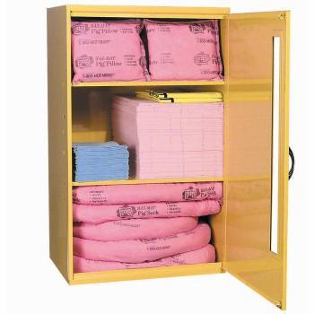 Pig* Large Wall-Mount Spill Kit^Absorbs Up To 19 Gallons Of Acids, Bases And Unknown Liquids. See-Through Front Panel. Write-On Label. Highly-Visible Screened "Spill Kit" Sign On Door Of Cabinet. Rugged Welded-Steel Construction. Complies With 29 Cfr 1910.1450