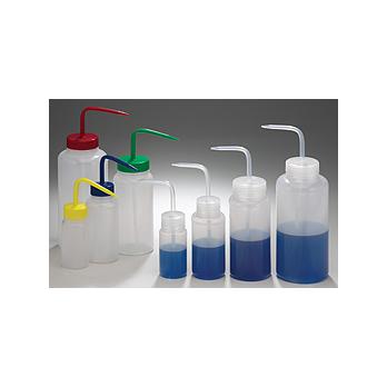 Low-density polyethylene wash bottles have color-coded polypropylene closures for easy identification and wide mouths for easy filling.Choose from: Natural, Red, Yellow, Blue, and Green in 250, 500 or 1,000mLNatural also available in 125mL