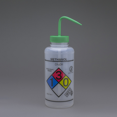 Safety-vented wash bottles provide compliance with the Globally Harmonized System of Classification and Labeling of Chemicals (GHS) and OSHA’s HazCom 2012 requirements - as pertains to 'Workplace Labels'., They are pre-printed with the chemical name and formula, GHS pictogram and signal word*, National Fire Protection Association (NFPA) Section 704 Four-color Diamond, health hazards, Chemical Abstract System (CAS) number, and suggested protective clothing and equipment., 04_BodyText: A unique valve prevents pressure build-up, eliminating potentially dangerous chemical drips, and allows dispensing in an upright or inverted position. The 53 mm (2") wide mouth makes refilling easy. Bottles are translucent LDPE (Sodium Hypochlorite is white LDPE for light-protection between 230 and 450 nm and Toluene is red LDPE) with color-coded polypropylene closures to aid in quick and easy identification., 05_BodyText: Note: *Bottles with labels that do not indicate a hazardous chemical do not have/require GHS pictogram or signal word. Methyl Ethyl Ketone and Toluene assemblies do not include vented valve., 02_BulletPoint: Pre-printed with chemical name and formula | Unique valve design improves use and safety | Translucent LDPE construction with color-coded polypropylene closures, 10_Ordering: Assortment orders include four bottles per bag, with one each of, Acetone, Isopropanol, Bleach, and Ethanol., Capacity: 500 ml (16.9 oz.), Deionized Water, Cat. No.: 10111-948, Cap color: Blue, Final SAP Desc Link: 22522245, SAP Description Status: Ready, Safety-vented wash bottles provide compliance with the Globally Harmonized System of Classification and Labeling of Chemicals (GHS) and OSHA’s HazCom 2012 requirements - as pertains to 'Workplace Labels'., They are pre-printed with the chemical name and formula, GHS pictogram and signal word*, National Fire Protection Association (NFPA) Section 704 Four-color Diamond, health hazards, Chemical Abstract System (CAS) number, and suggested protective clothing and equipment., 04_BodyText: A unique valve prevents pressure build-up, eliminating potentially dangerous chemical drips, and allows dispensing in an upright or inverted position. The 53 mm (2") wide mouth makes refilling easy. Bottles are translucent LDPE (Sodium Hypochlorite is white LDPE for light-protection between 230 and 450 nm and Toluene is red LDPE) with color-coded polypropylene closures to aid in quick and easy identification., 05_BodyText: Note: *Bottles with labels that do not indicate a hazardous chemical do not have/require GHS pictogram or signal word. Methyl Ethyl Ketone and Toluene assemblies do not include vented valve., 02_BulletPoint: Pre-printed with chemical name and formula | Unique valve design improves use and safety | Translucent LDPE construction with color-coded polypropylene closures, 10_Ordering: Assortment orders include four bottles per bag, with one each of, Acetone, Isopropanol, Bleach, and Ethanol., Capacity: 500 ml (16.9 oz.), Dichloromethane, Cat. No.: 10111-946, Cap color: Yellow, Final SAP Desc Link: 22522245, SAP Description Status: Ready, Safety-vented wash bottles provide compliance with the Globally Harmonized System of Classification and Labeling of Chemicals (GHS) and OSHA’s HazCom 2012 requirements - as pertains to 'Workplace Labels'., They are pre-printed with the chemical name and formula, GHS pictogram and signal word*, National Fire Protection Association (NFPA) Section 704 Four-color Diamond, health hazards, Chemical Abstract System (CAS) number, and suggested protective clothing and equipment., 04_BodyText: A unique valve prevents pressure build-up, eliminating potentially dangerous chemical drips, and allows dispensing in an upright or inverted position. The 53 mm (2") wide mouth makes refilling easy. Bottles are translucent LDPE (Sodium Hypochlorite is white LDPE for light-protection between 230 and 450 nm and Toluene is red LDPE) with color-coded polypropylene closures to aid in quick and easy identification., 05_BodyText: Note: *Bottles with labels that do not indicate a hazardous chemical do not have/require GHS pictogram or signal word. Methyl Ethyl Ketone and Toluene assemblies do not include vented valve., 02_BulletPoint: Pre-printed with chemical name and formula | Unique valve design improves use and safety | Translucent LDPE construction with color-coded polypropylene closures, 10_Ordering: Assortment orders include four bottles per bag, with one each of, Acetone, Isopropanol, Bleach, and Ethanol., Capacity: 500 ml (16.9 oz.), Acetone, Cat. No.: 10111-944, Cap color: Red, Final SAP Desc Link: 22522245, SAP Description Status: Ready, Safety-vented wash bottles provide compliance with the Globally Harmonized System of Classification and Labeling of Chemicals (GHS) and OSHA’s HazCom 2012 requirements - as pertains to 'Workplace Labels'., They are pre-printed with the chemical name and formula, GHS pictogram and signal word*, National Fire Protection Association (NFPA) Section 704 Four-color Diamond, health hazards, Chemical Abstract System (CAS) number, and suggested protective clothing and equipment., 04_BodyText: A unique valve prevents pressure build-up, eliminating potentially dangerous chemical drips, and allows dispensing in an upright or inverted position. The 53 mm (2") wide mouth makes refilling easy. Bottles are translucent LDPE (Sodium Hypochlorite is white LDPE for light-protection between 230 and 450 nm and Toluene is red LDPE) with color-coded polypropylene closures to aid in quick and easy identification., 05_BodyText: Note: *Bottles with labels that do not indicate a hazardous chemical do not have/require GHS pictogram or signal word. Methyl Ethyl Ketone and Toluene assemblies do not include vented valve., 02_BulletPoint: Pre-printed with chemical name and formula | Unique valve design improves use and safety | Translucent LDPE construction with color-coded polypropylene closures, 10_Ordering: Assortment orders include four bott