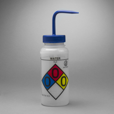 Safety-vented wash bottles provide compliance with the Globally Harmonized System of Classification and Labeling of Chemicals (GHS) and OSHA’s HazCom 2012 requirements - as pertains to 'Workplace Labels'., They are pre-printed with the chemical name and formula, GHS pictogram and signal word*, National Fire Protection Association (NFPA) Section 704 Four-color Diamond, health hazards, Chemical Abstract System (CAS) number, and suggested protective clothing and equipment., 04_BodyText: A unique valve prevents pressure build-up, eliminating potentially dangerous chemical drips, and allows dispensing in an upright or inverted position. The 53 mm (2") wide mouth makes refilling easy. Bottles are translucent LDPE (Sodium Hypochlorite is white LDPE for light-protection between 230 and 450 nm and Toluene is red LDPE) with color-coded polypropylene closures to aid in quick and easy identification., 05_BodyText: Note: *Bottles with labels that do not indicate a hazardous chemical do not have/require GHS pictogram or signal word. Methyl Ethyl Ketone and Toluene assemblies do not include vented valve., 02_BulletPoint: Pre-printed with chemical name and formula | Unique valve design improves use and safety | Translucent LDPE construction with color-coded polypropylene closures, 10_Ordering: Assortment orders include four bottles per bag, with one each of, Acetone, Isopropanol, Bleach, and Ethanol., Capacity: 500 ml (16.9 oz.), Deionized Water, Cat. No.: 10111-948, Cap color: Blue, Final SAP Desc Link: 22522245, SAP Description Status: Ready, Safety-vented wash bottles provide compliance with the Globally Harmonized System of Classification and Labeling of Chemicals (GHS) and OSHA’s HazCom 2012 requirements - as pertains to 'Workplace Labels'., They are pre-printed with the chemical name and formula, GHS pictogram and signal word*, National Fire Protection Association (NFPA) Section 704 Four-color Diamond, health hazards, Chemical Abstract System (CAS) number, and suggested protective clothing and equipment., 04_BodyText: A unique valve prevents pressure build-up, eliminating potentially dangerous chemical drips, and allows dispensing in an upright or inverted position. The 53 mm (2") wide mouth makes refilling easy. Bottles are translucent LDPE (Sodium Hypochlorite is white LDPE for light-protection between 230 and 450 nm and Toluene is red LDPE) with color-coded polypropylene closures to aid in quick and easy identification., 05_BodyText: Note: *Bottles with labels that do not indicate a hazardous chemical do not have/require GHS pictogram or signal word. Methyl Ethyl Ketone and Toluene assemblies do not include vented valve., 02_BulletPoint: Pre-printed with chemical name and formula | Unique valve design improves use and safety | Translucent LDPE construction with color-coded polypropylene closures, 10_Ordering: Assortment orders include four bottles per bag, with one each of, Acetone, Isopropanol, Bleach, and Ethanol., Capacity: 500 ml (16.9 oz.), Dichloromethane, Cat. No.: 10111-946, Cap color: Yellow, Final SAP Desc Link: 22522245, SAP Description Status: Ready, Safety-vented wash bottles provide compliance with the Globally Harmonized System of Classification and Labeling of Chemicals (GHS) and OSHA’s HazCom 2012 requirements - as pertains to 'Workplace Labels'., They are pre-printed with the chemical name and formula, GHS pictogram and signal word*, National Fire Protection Association (NFPA) Section 704 Four-color Diamond, health hazards, Chemical Abstract System (CAS) number, and suggested protective clothing and equipment., 04_BodyText: A unique valve prevents pressure build-up, eliminating potentially dangerous chemical drips, and allows dispensing in an upright or inverted position. The 53 mm (2") wide mouth makes refilling easy. Bottles are translucent LDPE (Sodium Hypochlorite is white LDPE for light-protection between 230 and 450 nm and Toluene is red LDPE) with color-coded polypropylene closures to aid in quick and easy identification., 05_BodyText: Note: *Bottles with labels that do not indicate a hazardous chemical do not have/require GHS pictogram or signal word. Methyl Ethyl Ketone and Toluene assemblies do not include vented valve., 02_BulletPoint: Pre-printed with chemical name and formula | Unique valve design improves use and safety | Translucent LDPE construction with color-coded polypropylene closures, 10_Ordering: Assortment orders include four bottles per bag, with one each of, Acetone, Isopropanol, Bleach, and Ethanol., Capacity: 500 ml (16.9 oz.), Acetone, Cat. No.: 10111-944, Cap color: Red, Final SAP Desc Link: 22522245, SAP Description Status: Ready, Safety-vented wash bottles provide compliance with the Globally Harmonized System of Classification and Labeling of Chemicals (GHS) and OSHA’s HazCom 2012 requirements - as pertains to 'Workplace Labels'., They are pre-printed with the chemical name and formula, GHS pictogram and signal word*, National Fire Protection Association (NFPA) Section 704 Four-color Diamond, health hazards, Chemical Abstract System (CAS) number, and suggested protective clothing and equipment., 04_BodyText: A unique valve prevents pressure build-up, eliminating potentially dangerous chemical drips, and allows dispensing in an upright or inverted position. The 53 mm (2") wide mouth makes refilling easy. Bottles are translucent LDPE (Sodium Hypochlorite is white LDPE for light-protection between 230 and 450 nm and Toluene is red LDPE) with color-coded polypropylene closures to aid in quick and easy identification., 05_BodyText: Note: *Bottles with labels that do not indicate a hazardous chemical do not have/require GHS pictogram or signal word. Methyl Ethyl Ketone and Toluene assemblies do not include vented valve., 02_BulletPoint: Pre-printed with chemical name and formula | Unique valve design improves use and safety | Translucent LDPE construction with color-coded polypropylene closures, 10_Ordering: Assortment orders include four bott