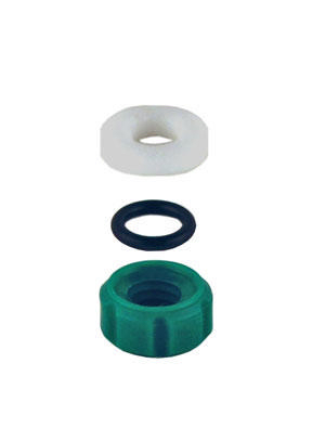REPLACEMENT COMPONENTS FOR 1:5 TAPER FLUOROPOLYMER RESIN PLUGS^ Plug Size: 14.4/44; Washer. Replacement components for 1:5 taper fluoropolymer resin plugs are all sold in packages of 12. O-rings are Viton, nuts are green while the washers are white.