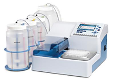 Wellwash Versa Microplate Washer^ Number of Wash Bottles: Up to 3. Wash Heads: 1x8, 1x12, 2x8, 2x12,1x16, 1x8 cell, 2x8 cell. Plate Types: 96-, 384-well plates. Data Connection: USB, RS-232-C. Bottles: Non-pressurized. Wash Volume: 50 to 1000uL (96), 20 to 300uL (384). Dimensions 34.5x38.5x24cm.