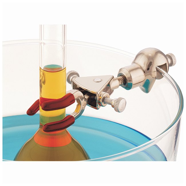 Nickel-plated constructionBuilt-in holder grip walls of varying thicknesses, up to 9mm (0.3 in.)Knurled thumbscrew tightens jaws to hold objects firmlyAvailable in small and large sizeLarge water bath clamp comes with non-slip vinyl sleeves and fiberglass covers which are used for applications above 100°C