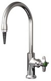 Single Gooseneck Faucet^ Deck mounted. Chrome plated brass. 20.3cm spread gooseneck and removable straight serrated hose connector. Valve has renewable unit with replaceable stainless steel seat. Includes 1.27cm IPS threaded shank, locknut, washer. CSA certified. Complies with ANSI/ASME A112.18.1M.