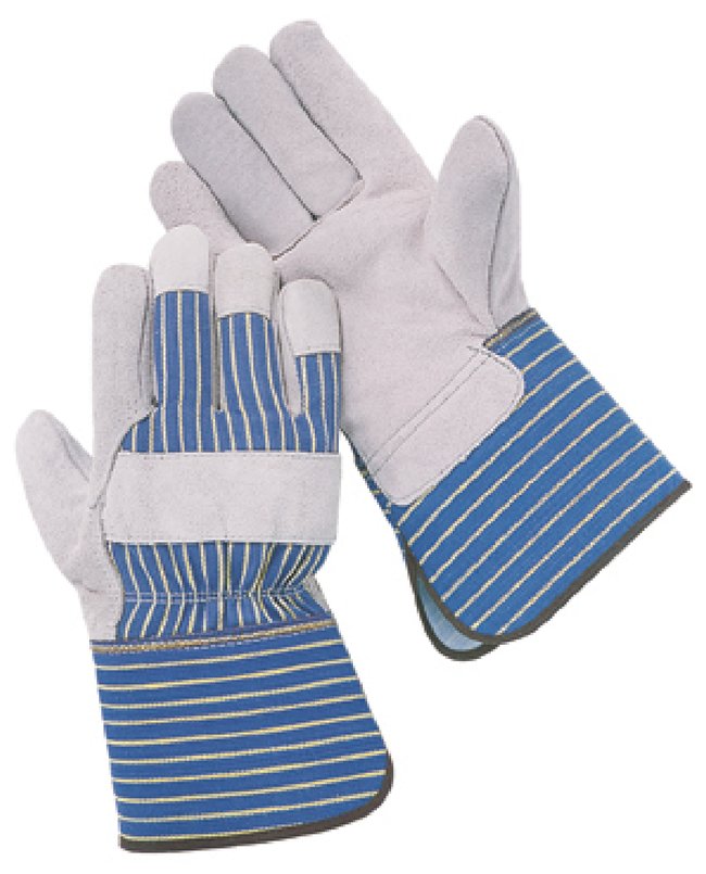 Durable gloves feature split leather index fingers, leather tips, and a leather knuckle strap. The lined palm provides additional comfort in the palm of the hand.