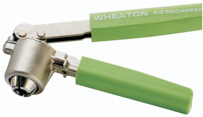 Wheaton E-Z Decappers are recommended for decapping standard laboratory vials.Several sizes of decapper are available, including those that remove seals 8mm, 11mm, 13mm and 20mm wide.The decappers come with visible size labels for easy identification.User comfort is preserved by an ergonomically designed, cushioned handle. Hand fatigue is reduced by the short handle and redesigned spring assembly.Decappers can be autoclaved, although autoclaving may change the appearance or reduce product life. They should not be autoclaved at greater than 121°C