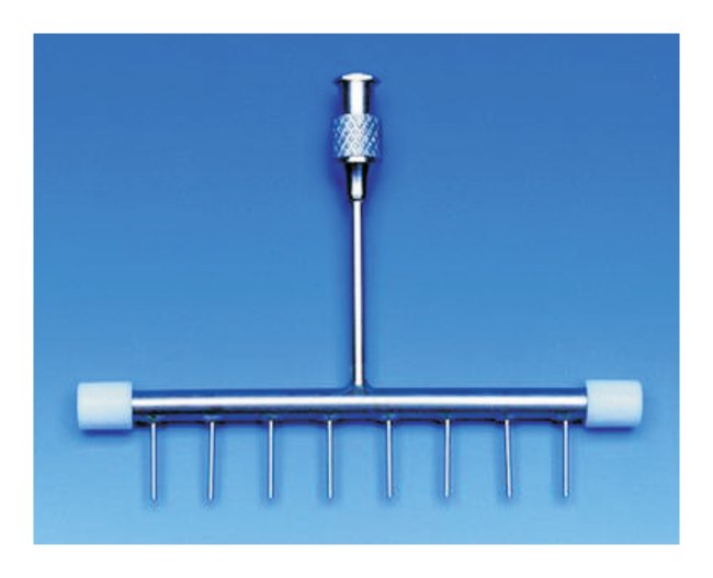 Microtest Manifolds with tightly fitting Luer and Luer Lock syringe nozzles are ideal for use with 24 or 96 well microplates.