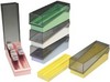 SlideFile* Storage System^ For up to 400 75x25mm microscope slides. System includes a slide box, removable tray, tinted hinged cover. Impact-resistant plastic. The removable tray has 100 individually numbered slots. Stackable. Not autoclavable. Dimensions: 8.2Wx24.5Lx8.6Hcm. Color: white.