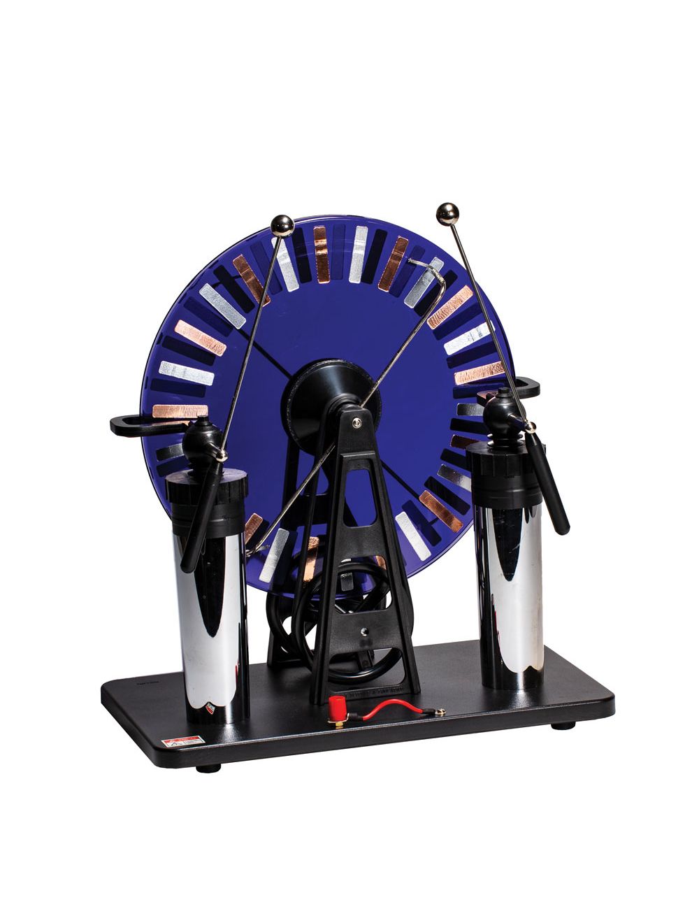 We offer a superior quality Wimshurst machine for demonstrating high voltage electric charges. Our unit features acrylic rotating disks, good quality foil strips and brushes, insulated cylindrical capacitors, and a durable plastic platform. Guaranteed to produce large sparks for easy classroom demonstration. Maximum Voltage is 90,000 V.