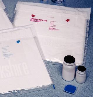 Gamma Wipe* 300 Wipers^ For ISO Class 3 environments. Continuous-filament 100% polyester knitted in tube form, sealed edges. Two-ply construction for absorbency, durability. Laundered in ISO Class 4 cleanroom, sterilized by gamma radiation to SAL 1e-6. 30.5x30.5cm. Stacked in peel-away header bags.