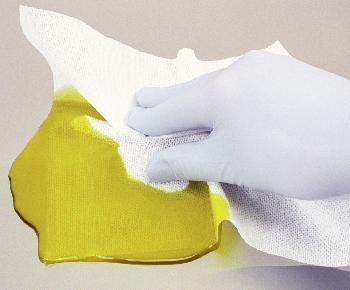 ProZorb* Wipers^ For biotech, pharmaceutical, medical device, electronics industries. For ISO Class 6 environments. DuPont* contamination control fabric. Nonwoven polyester/cellulose blend. Low extractables. Apertured surface texture for effective cleaning, particle removal. Size: 10.2x10.2cm.