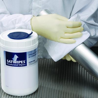 SATWipes* C1 Presaturated Wipers^ Nonwoven polyester/cellulose wipers presaturated with 100% isopropyl alcohol. For use prior to cleanroom entry, wiping process tools and other equipment. For ISO Class 6 environments. Dispensed from center-pull canister. Size: 15.2x22.9cm.