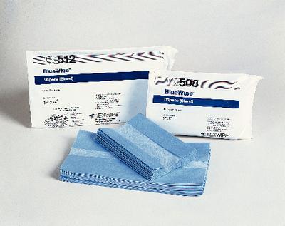 BlueWipe Cleanroom Wipers^ For ISO Class 6 environments. Blue color darkens when wet to indicate liquid exposure. Abrasion-free surface for inspecting transparent materials. 55% polyester/45% cellulose. C-folded and packaged in dispenser bags. 30.5x30.5cm. 50 wipers per pack, 10 packs per case.