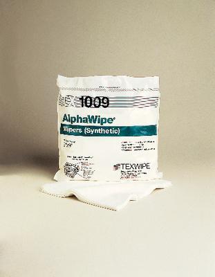 AlphaWipe* Cleanroom Wipers^ 100% continuous filament polyester, constructed in a double-knit, no-run, interlock pattern. Soft and nonabrasive. Cleanroom laundered. Packed in Solvent-safe Bag-Within-A-Bag* packaging in an ISO Class 3 cleanroom. 22.9x22.9cm.