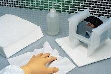 MicroFirst* LP Wiper^ Polyester/rayon, non-woven. Made of soft, absorbent Dupont Sontara* MicroPure LP fabric, with no binders or chemical treatments. For wiping delicate surfaces and packaging sensitive components. Double-bagged to ensure cleanliness. Size: 22.9x22.9cm. Absorbancy: 441 cc/m2.