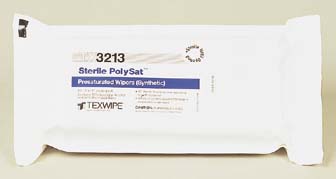 Sterile Presaturated Wipers^ Nonwoven, hydroentangled 45% polyester/55% cellulose. High absorbency and bidirectional strength. Low extractables. Pre-wetted with 70% 0.2um-filtered USP-grade 2-propanol and 30% 18megohm deionized water. 20 wipers/FlexPack. 22.86x27.94cm