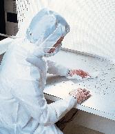 AlphaWipe* Cleanroom Wipers^ 100% continuous filament polyester, constructed in a double-knit, no-run, interlock pattern. Soft and nonabrasive. Cleanroom laundered. Packed in Solvent-safe Bag-Within-A-Bag* packaging in an ISO Class 3 cleanroom. 10.2x10.2cm.