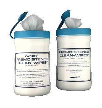 Here is the corrected text: Premoistened wipers are designed for environmentally sensitive areas and are ideal for wiping optical parts, delicate glassware, electrodes, cuvettes, microscopes, and lenses. They are available premoistened with 70% reagent-grade isopropyl alcohol and 30% reagent-grade deionized water, 100% pure reagent-grade deionized water, or an eyeglass cleaning solution. Strong, nonwoven cellulose/polyester wipers are soft, lint-free, and will not scratch surfaces. They measure 15.2 × 22.9 cm (6 × 9 inches) and are individually dispensed in a handy polyethylene canister. The unique opening allows easy removal of wipers, and the snap-on sealed top helps eliminate contamination. Do not use wipes on skin. Dry wipers are also available and may be used with any liquid by simply adding 236.6 mL (8 oz) of the liquid to the wiper canister. Key features include: * Strong, nonwoven cellulose/polyester blend * Soft and lint-free * Premoistened or dry options * For use in environmentally sensitive applications Wipes are supplied in a shrink-wrapped polyethylene canister, with 100 wipes per canister.
